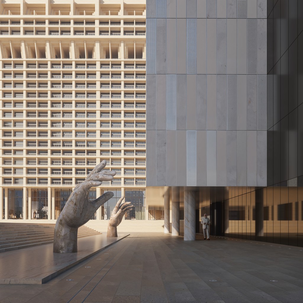La narrativa è fondamentale, ma per noi non è mai separata dall’architettura. In studio partiamo sempre da una domanda molto chiara: che tipo di esperienza vuole generare questo progetto? MVRDV disegna architettura, e il nostro compito è tradurre quell’idea in qualcosa che il cliente o il pubblico possa quasi “vivere” in anticipo. Per questo la costruzione della scena è sempre una delle prime discussioni con il team di architetti. Non si tratta solo di inserire persone per animare l’immagine, ma di capire come lo spazio viene usato, attraversato, abitato. Che tipo di energia ha? È uno spazio collettivo, intimo, radicale, ironico? La narrativa nasce da lì: dall’architettura. Poi ovviamente entrano in gioco luce, materiali, atmosfera, e lì il tecnicismo diventa fondamentale. Ma è uno strumento al servizio dell’esperienza. Se riesci a far percepire davvero cosa significherà stare in quello spazio, allora l’immagine funziona. Il punto non è scegliere tra storia e tecnica: è farle lavorare insieme, con l’architettura sempre al centro.
